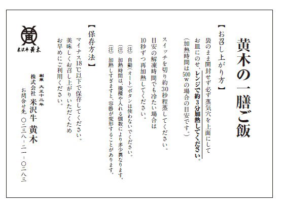| 製造者 | 株式会社米沢牛黄木 |